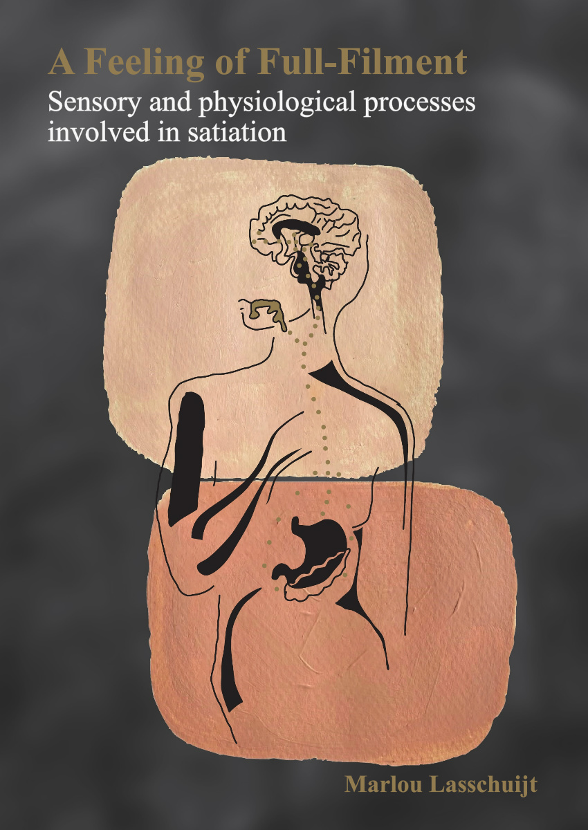 Verzadiging is een proces dat optreedt tijdens het eten en waarbij remmende signalen op sensorisch, hormonaal, digestief en cognitief niveau betrokken zijn. De smaak en textuur van voedsel beïnvloeden dit proces. Hardere voedingsmiddelen met een intense smaak verzadigen meer, wat betekent dat we minder van deze voedingsmiddelen hoeven te eten om ons vol te voelen, vergeleken met zachtere voedingsmiddelen met een lagere smaakintensiteit. Oro-sensory exposure (OSE), de smaakwaarneming van voedsel in de mond, speelt dus een belangrijke rol bij verzadiging en beïnvloedt de maaltijdgrootte. Hoe oro-sensore signalen verzadiging beïnvloeden, is echter nog niet volledig duidelijk. Daarom was het hoofddoel van dit proefschrift om de rol van sensorische signalen in de fysiologische processen die ten grondslag liggen aan verzadiging beter te begrijpen. Om dit te bestuderen, onderzochten we het effect van OSE (duur en intensiteit) en de eetsnelheid op de voedselinname, de bijbehorende (cefale) endocriene reacties en de hersenreactiviteit.