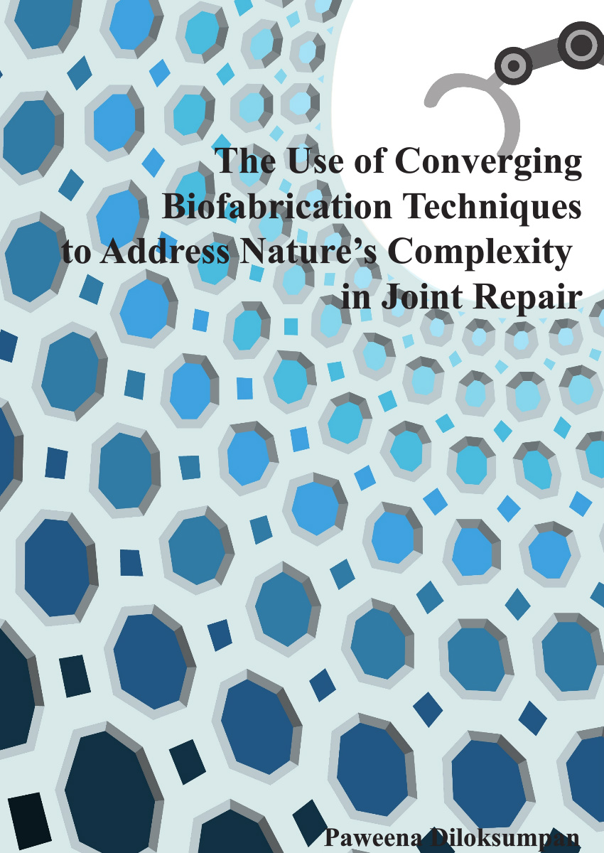 De moderne drie-dimensionale (3D) bioprinttechnieken bieden verschillende mogelijkheden voor de productie van op maat gemaakte chondrale of osteochondrale implantaten, maar het met behulp van deze technieken integreren van materialen met (zeer) uiteenlopende mechanische eigenschappen is nog steeds een forse uitdaging binnen de regeneratieve geneeskunde. In dit proefschrift wordt via een tweetal wegen geprobeerd een antwoord op deze uitdaging te vinden. Deze twee benaderingen zijn: 1) de ontwikkeling van printbare materialen voor de productie van de botcomponent van het implantaat met dusdanige fysische en chemische eigenschappen dat die materialen tegelijkertijd geprint kunnen worden met de hydrogelen die gebruikt worden voor het kraakbeengedeelte van het implantaat; en 2) de ontwikkeling van een proces waarbij op meerdere schaalniveaus geprint kan worden om de bot- en kraakbeencompartimenten te kunnen integreren. Via deze routes wordt in dit proefschrift een veelbelovende strategie ontwikkeld waarbij verschillende 3D (bio-)printtechnieken gecombineerd worden om een geïntegreerd osteochondraal implantaat te produceren dat bestaat uit een kraakbeendeel dat gebaseerd is op hydrogelen die met microvezels versterkt zijn en een botcompartiment op basis van een calciumfosfaat product.